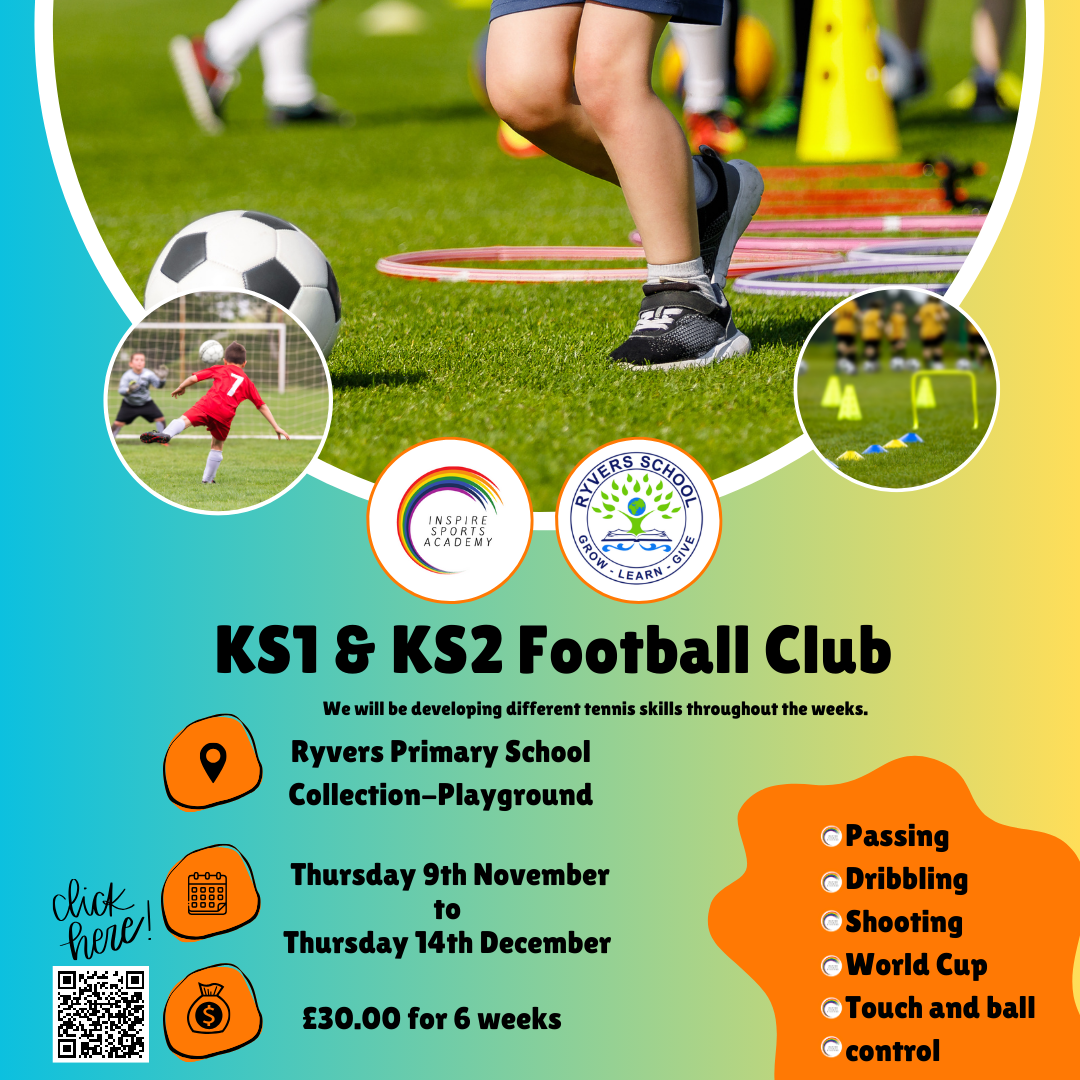 Inspire Sports Academy are running an Afterschool KS1 & KS2 Football Club for the pupils on a Thursday.